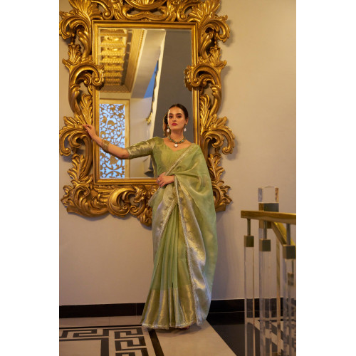 Blouse Work : Zari Weaving Work With Sequins Lace Border
