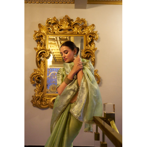 Saree work : Zari Weaving Work With Sequins Lace Border