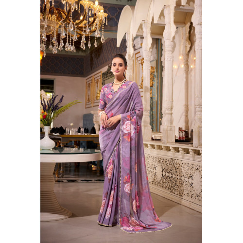 The best way to represent your classy look with this spectacular georgette printed saree with Pearl lace border.