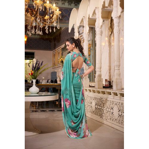 The best way to represent your classy look with this spectacular georgette printed saree with Pearl lace border.