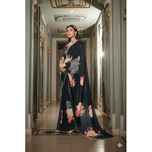 - Tags: #sareecollection #georgettefabric #georgette #printedcollection #partywear ##georgettesaree #printed #pearlaceseborder #saree #printedsaree #lasebordersaree #fashion #stylish #mumbaisaree #indianfashion #womendresses