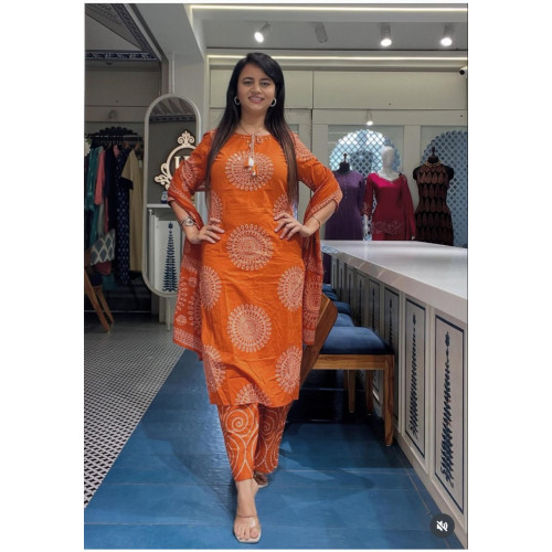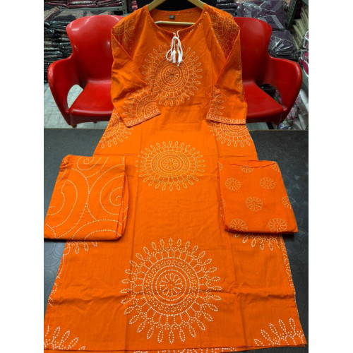 Bhushanbazar New Super Hit Design A-Line Kurti with Pant & Dupatta (Cotton 60×60)